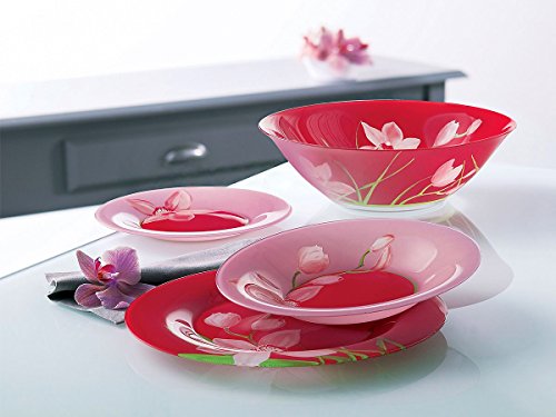 The dramatic colors and modern shapes of our colored glass dinner plates add to the décor of your establishment and create an impressive presentation for your plated foods. Choose from several different patterns in vibrant colors to make a table stand out. Whatever your personal preferences for style, color, pattern, and shape, find the dinnerware sets you seek. Because they free up visual space, glass dishes and serveware are ideal for smaller dining tables.additionally, they allow your table linens to shine—layer glass plates and bowls over a floral tablecloth to see the pattern peek through. Only 1 available and it's in 1 person's cart.